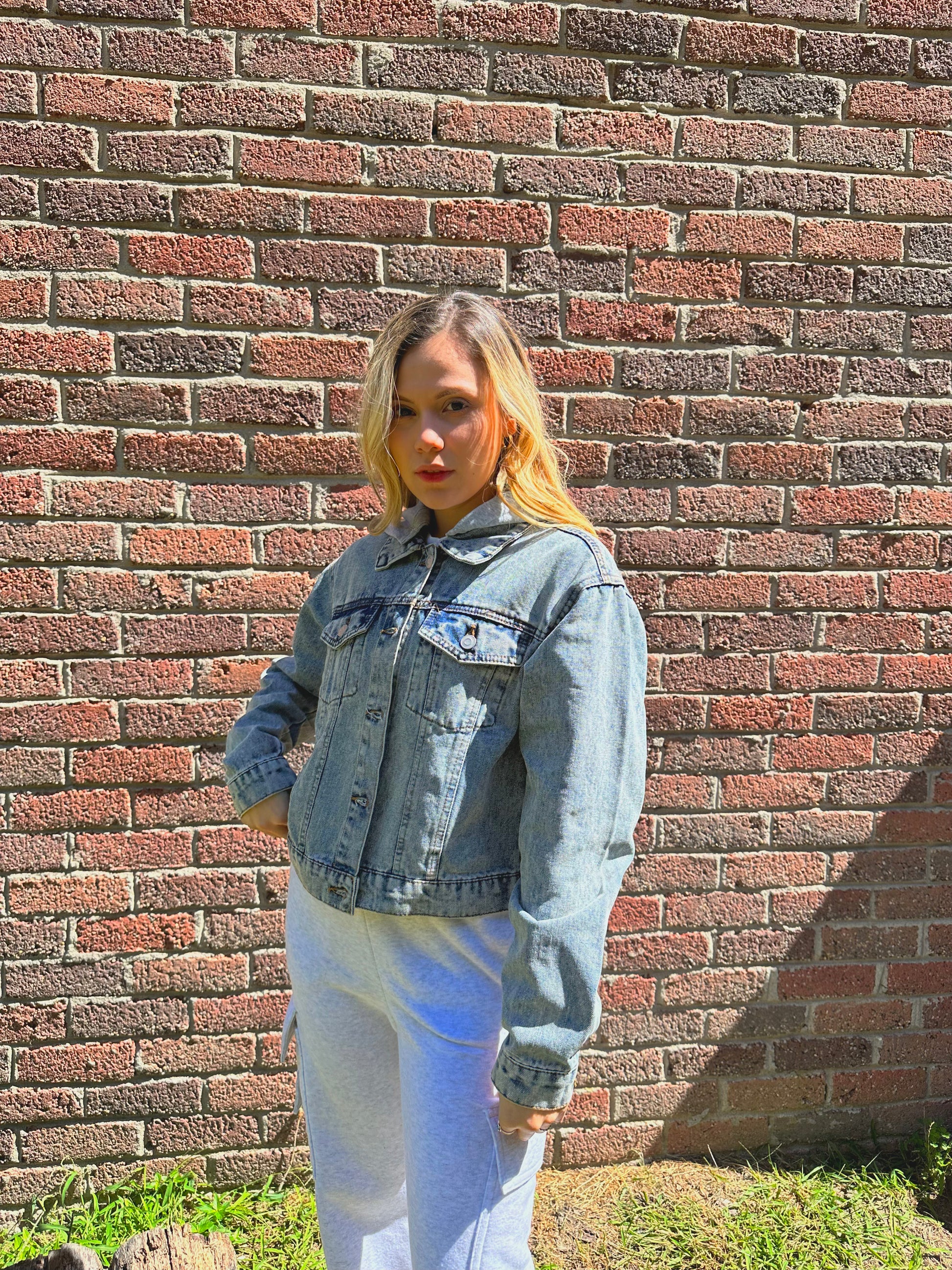 Denim jacket with hood