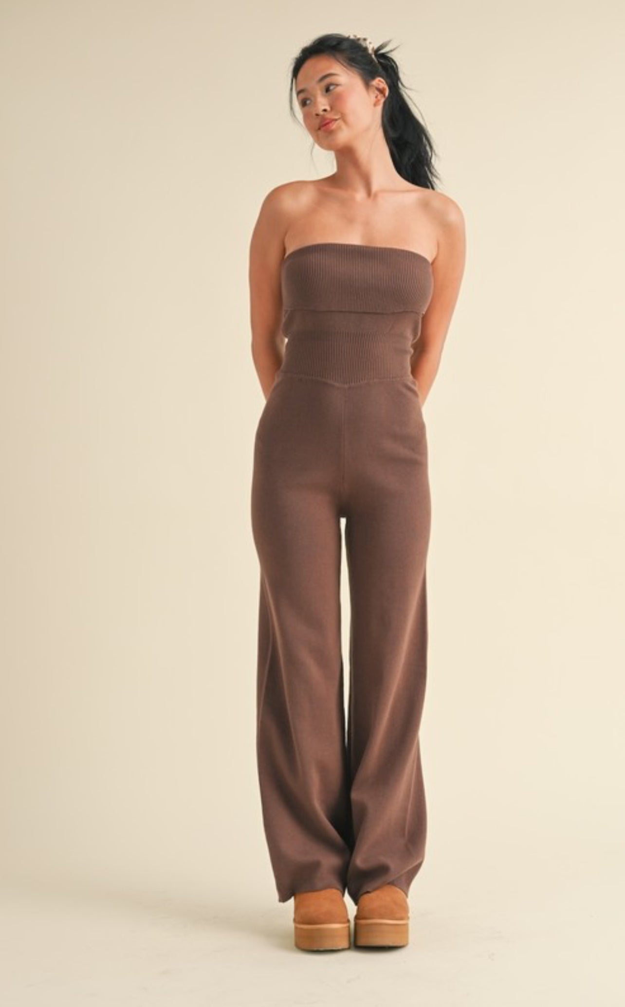 Foldover bandeau knit sweater jumpsuit